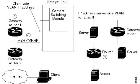 1— The CSM does not perform a Layer 3 lookup to forward traffic; the CSM cannot respond to ICMP redirects.