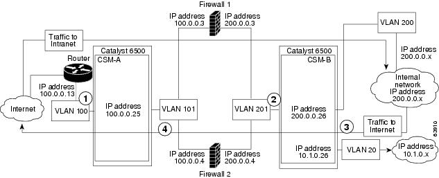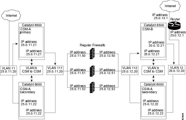Figure 11-2 Regular Firewall Configuration (Dual CSMs)