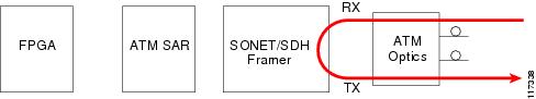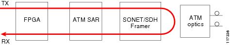 Figure 8-3 shows a router-level diagram of a line loopback. In this example, the device with the ATM SPA is shown as a Cisco 7600 series router, but it can also be a Catalyst 6500 series switch. Figure 8-4 shows a block-level diagram of a line loopback, as it is performed within the ATM interface circuitry.