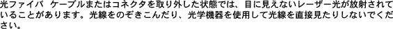 Invisible laser radiation may be emitted from disconnected fibers or connectors. Do not stare into beams or view directly with optical instruments. Statement 1051 |