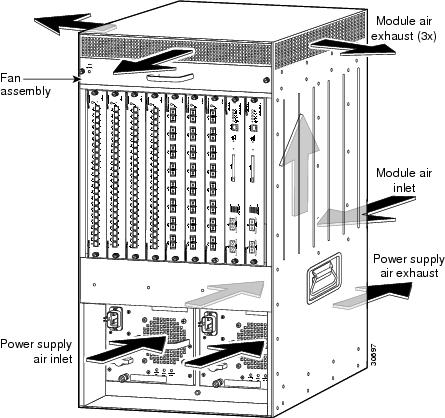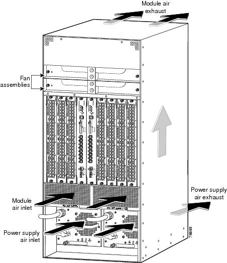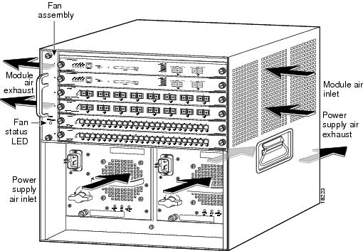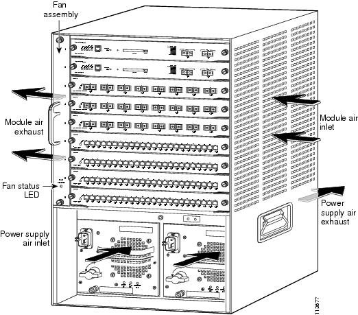 The Catalyst 6500 series switch is designed to be installed in an environment where there is a sufficient volume of air available to cool the supervisor engines, modules, and power supplies. Any constraints placed on the free flow of air through the chassis or an elevated ambient air temperature can cause the switch to overheat and shut down.