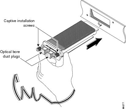 Figure 1-44 Cabling an Optical 10-Gigabit X2 Transceiver