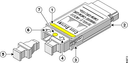 Figure A-4 shows a 1000BASE-T (copper) SFP transceiver. Figure A-5 shows a 1000BASE-X (optical) SFP transceiver. Table A-8 lists the cabling specifications for the SFP transceivers.