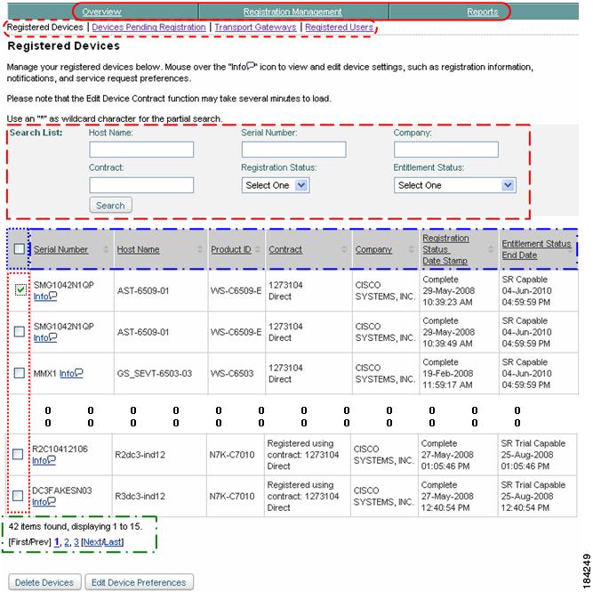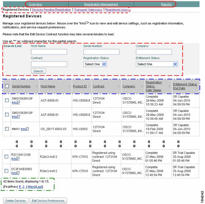 Report and view registered device and contract information.