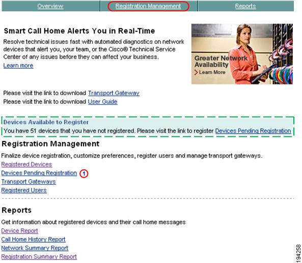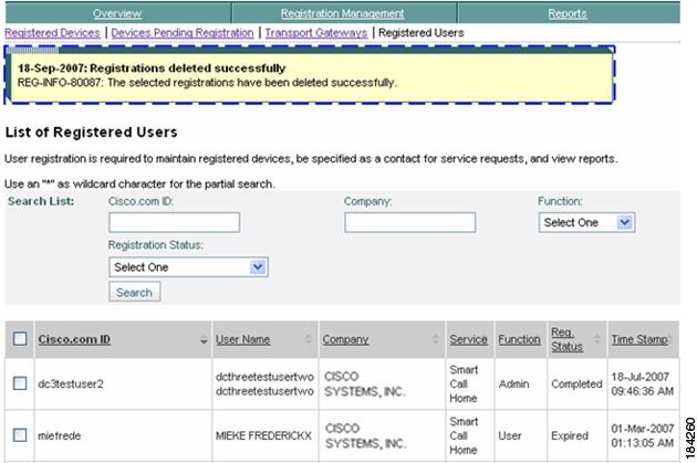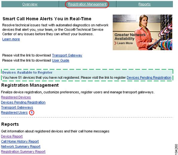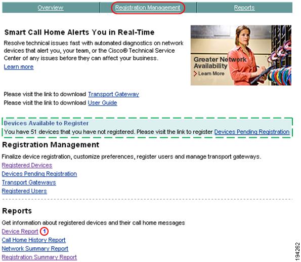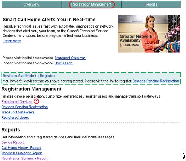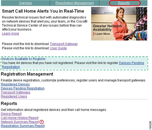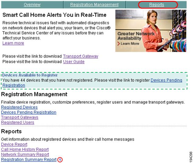 This section describes how to perform Registration Summary Report processes on the Smart Call Home web application and explains how to perform the following tasks: