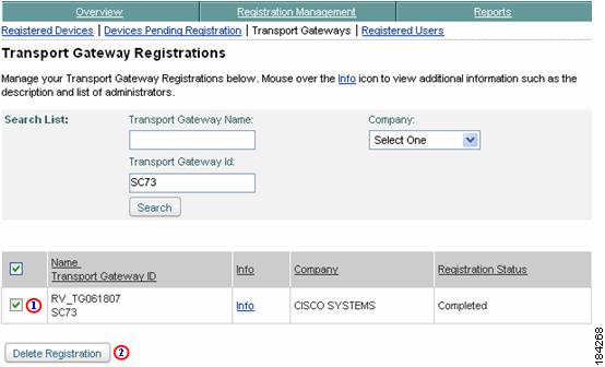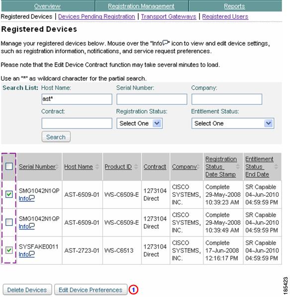 Registered Devices search results
