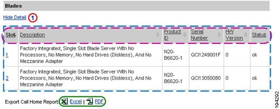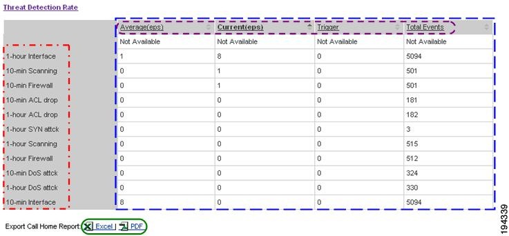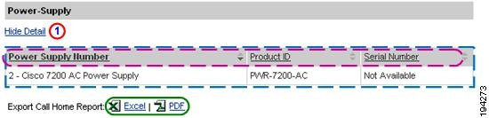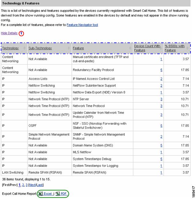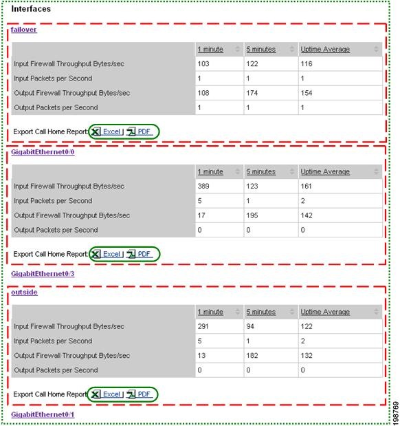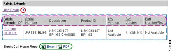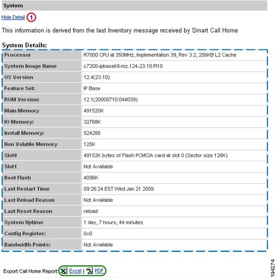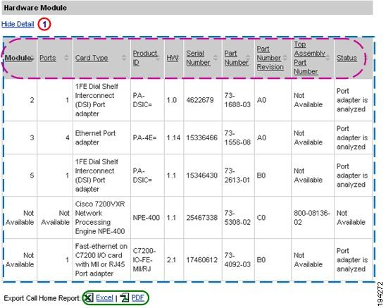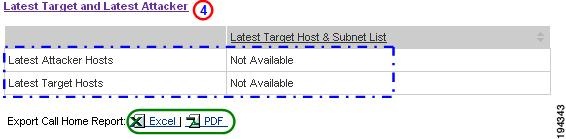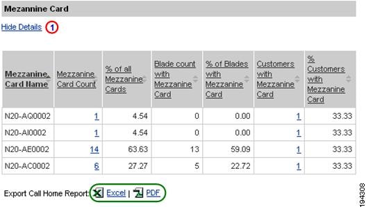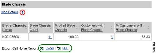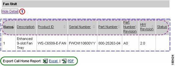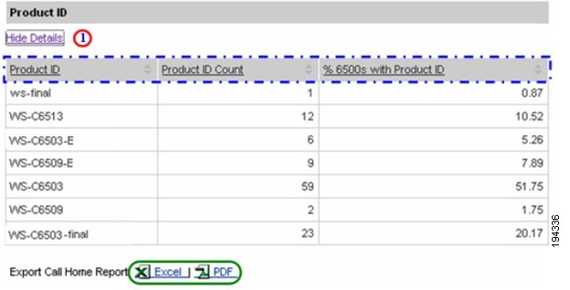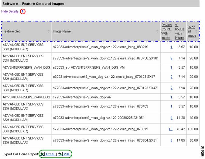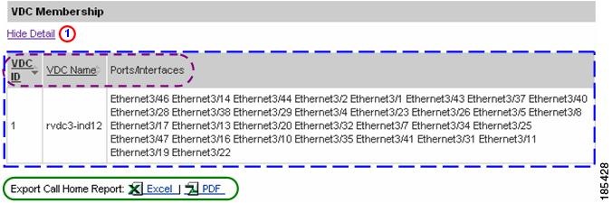 Numerous pages on both Device Reports and Call Home History Reports have an Export Call Home Report function, which lets you export the report information on the current page to either an Excel or a PDF format.