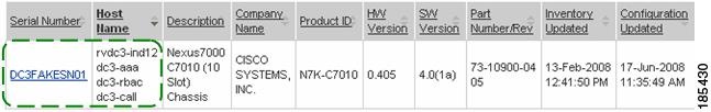 An example of these three different types of serial name / host name relationships is shown in a portion of the Device Report Results page, in the following graphic: