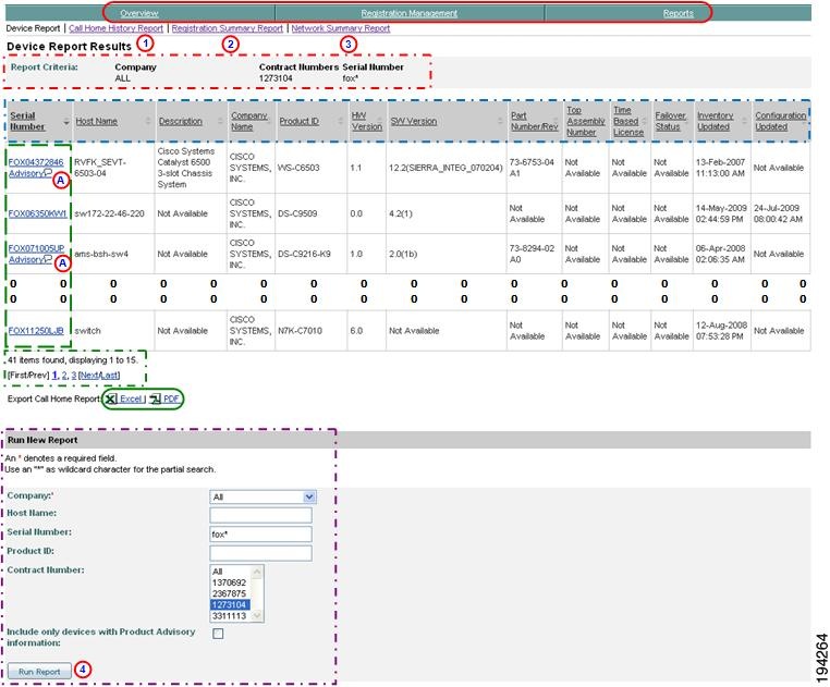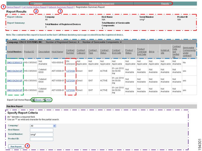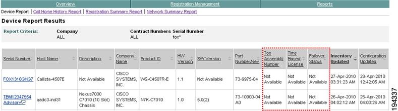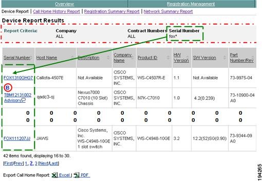 This report displays registered device and contract information for those devices the customer has that are known in Smart Call Home; only the companies you have access to will be displayed in the report.