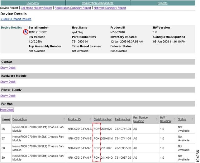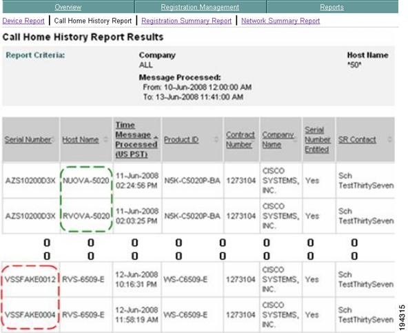 Smart Call Home will illustrate these different serial number / host name relationships on the following web pages: