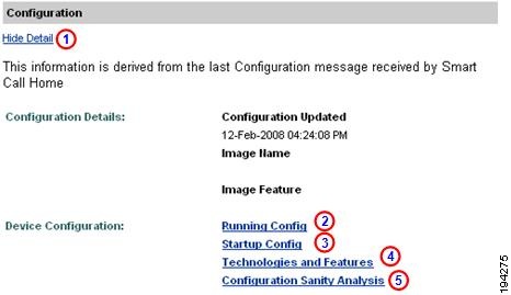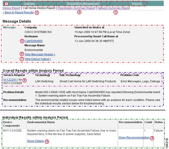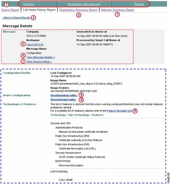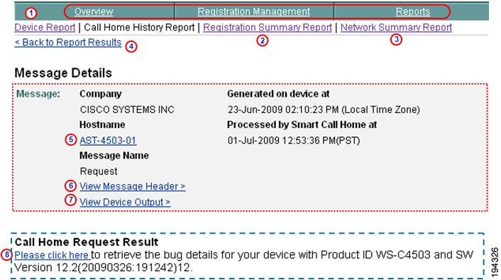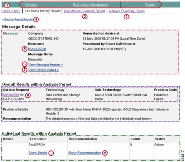 The Smart Call Home web application provides access to: