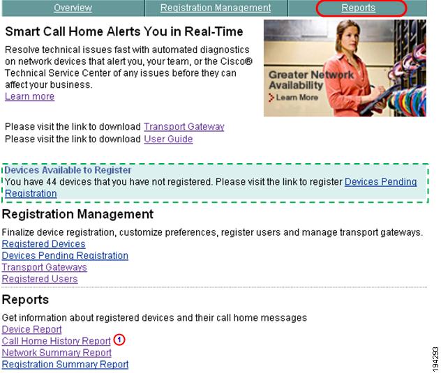 Reports - Reports about Call Home enabled devices and