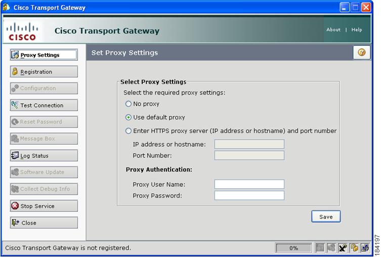 The Close function closes the Transport Gateway Application window but does not stop the Transport Gateway service. To close the Transport Gateway Application window, perform the following steps:
