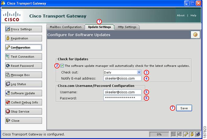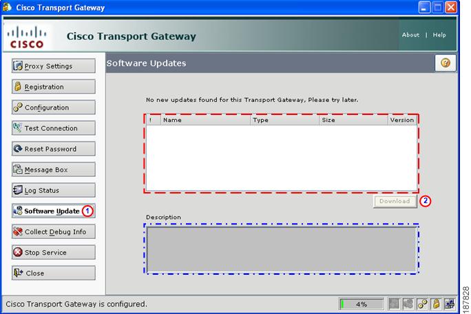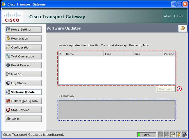The Software Update function performs an immediate search for updated software code for the Transport Gateway.