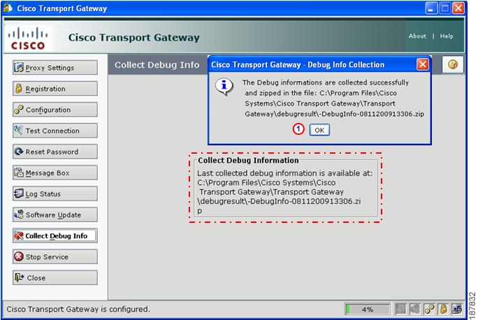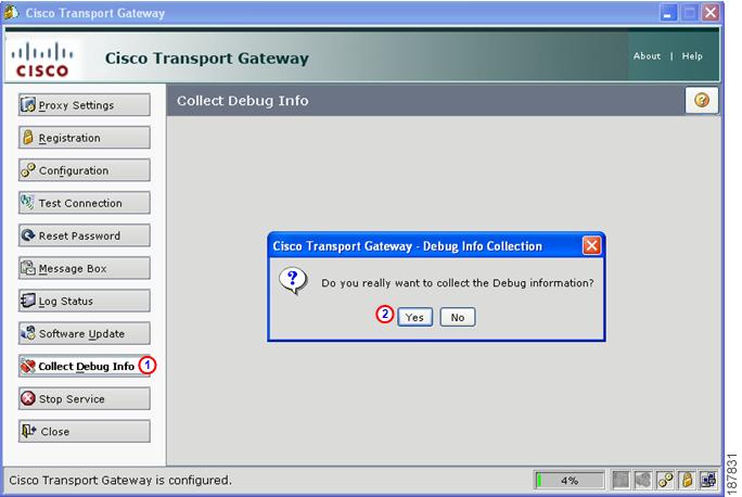 The Collect Debug Info function performs an immediate collection of debug information and stores the debug data at a location that the Transport Gateway identifies for you.
