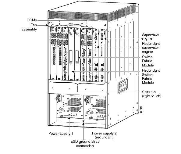 The switch and router chassis physical interfaces are located on the supervisor engine front panel. (See Figure 4.)