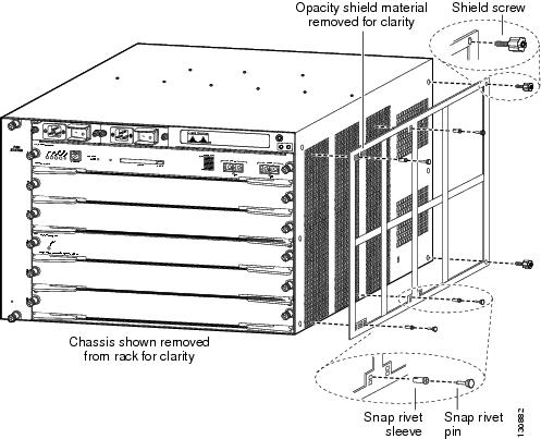 The service modules require that a special opacity shield be installed over the intake-side air vents in order to operate in FIPS-approved mode. The shield decreases the surface area of the vent holes, reducing visibility within the cryptographic boundary to FIPS-approved specifications. Detailed installation instructions for the shield are provided in this publication.