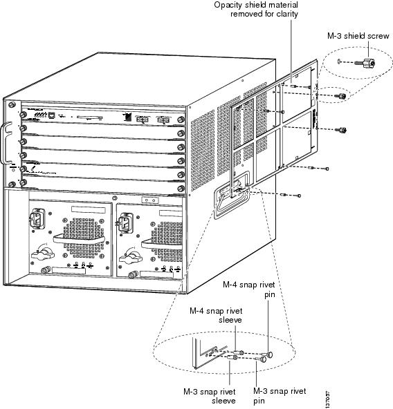 The service modules require that a special opacity shield be installed over the intake-side air vents in order to operate in FIPS-approved mode. The shield decreases the surface area of the vent holes, reducing visibility within the cryptographic boundary to FIPS-approved specifications. Detailed installation instructions for the shield are provided in this publication.