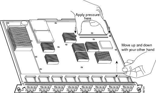 Figure 11 Seating the Distributed Forwarding Card on the Module