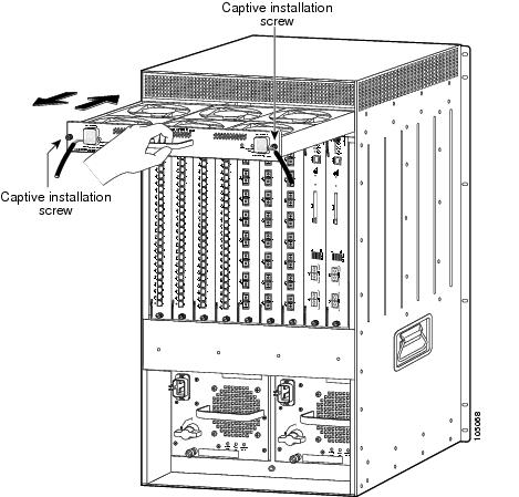 Note If the captive installation screws are loose, the EMI gaskets on the installed modules will push adjacent modules toward the open slot, reducing the opening size and making it difficult to install the replacement module.
