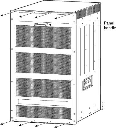 Step 4 Use a number 1 Phillips-head screwdriver to install the 8 panel screws, 4 each located along the top and bottom of the chassis. (See Figure 2.)
