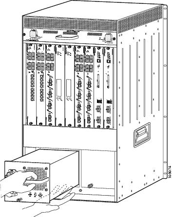 Step 2 Grasp the power supply handle with one hand, and slide the power supply part of the way out of the chassis. Place your other hand underneath the power supply, as shown in Figure 6, and slide the power supply completely out of the chassis.