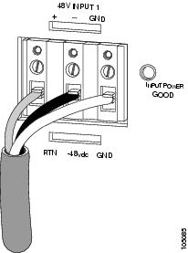 Step 4 Connect the DC-input wires to the terminal block (see Figure 14) in this order: